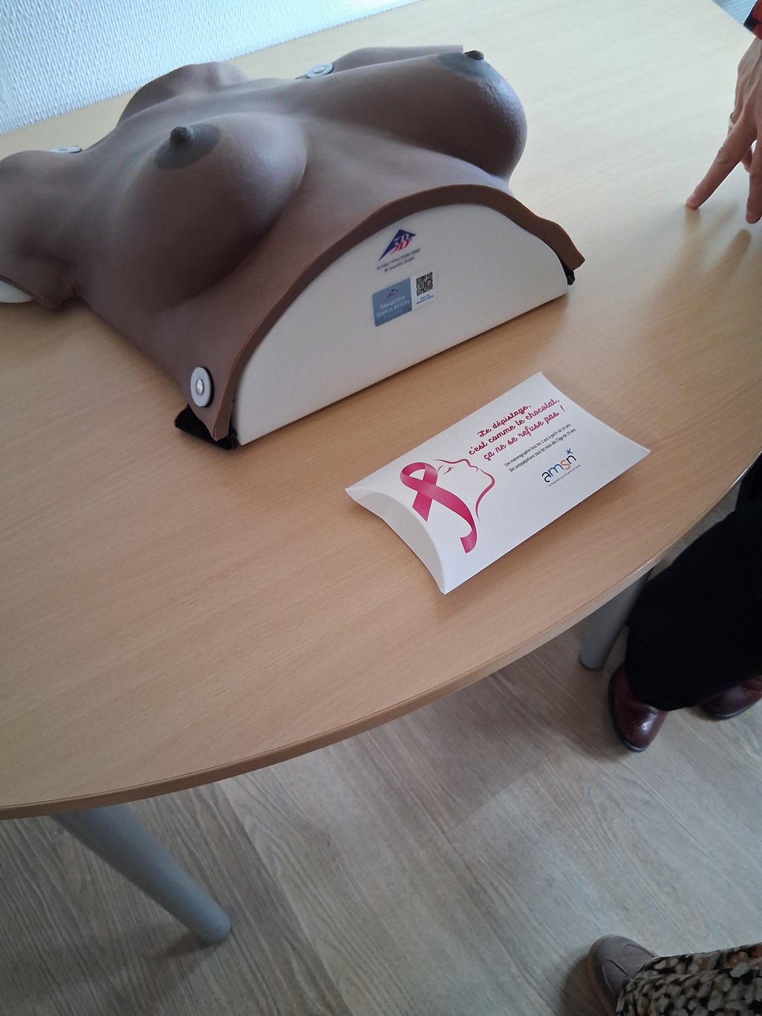 Cet atelier a permis aux participants d’apprendre les bonnes pratiques d’autosurveillance : fréquence recommandée, gestes à adopter pour l’autopalpation, et reconnaissance des différents types de masses suspectes, grâce à la manipulation d’un mannequin pédagogique.